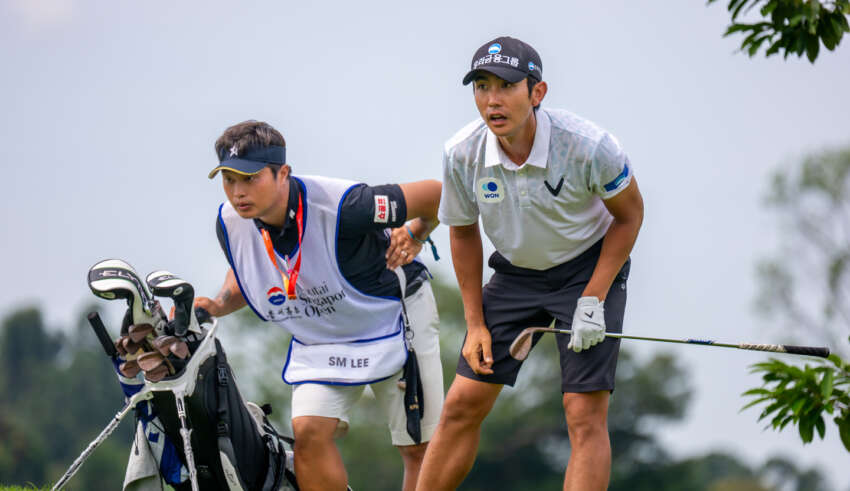 Soomin Lee grabbed the lead at the halfway mark of the Moutai Singapore Open today after making birdie on the last two holes – rekindling memories of previous exploits here on the New Course at Singapore Island Country Club a mere 14 years ago.